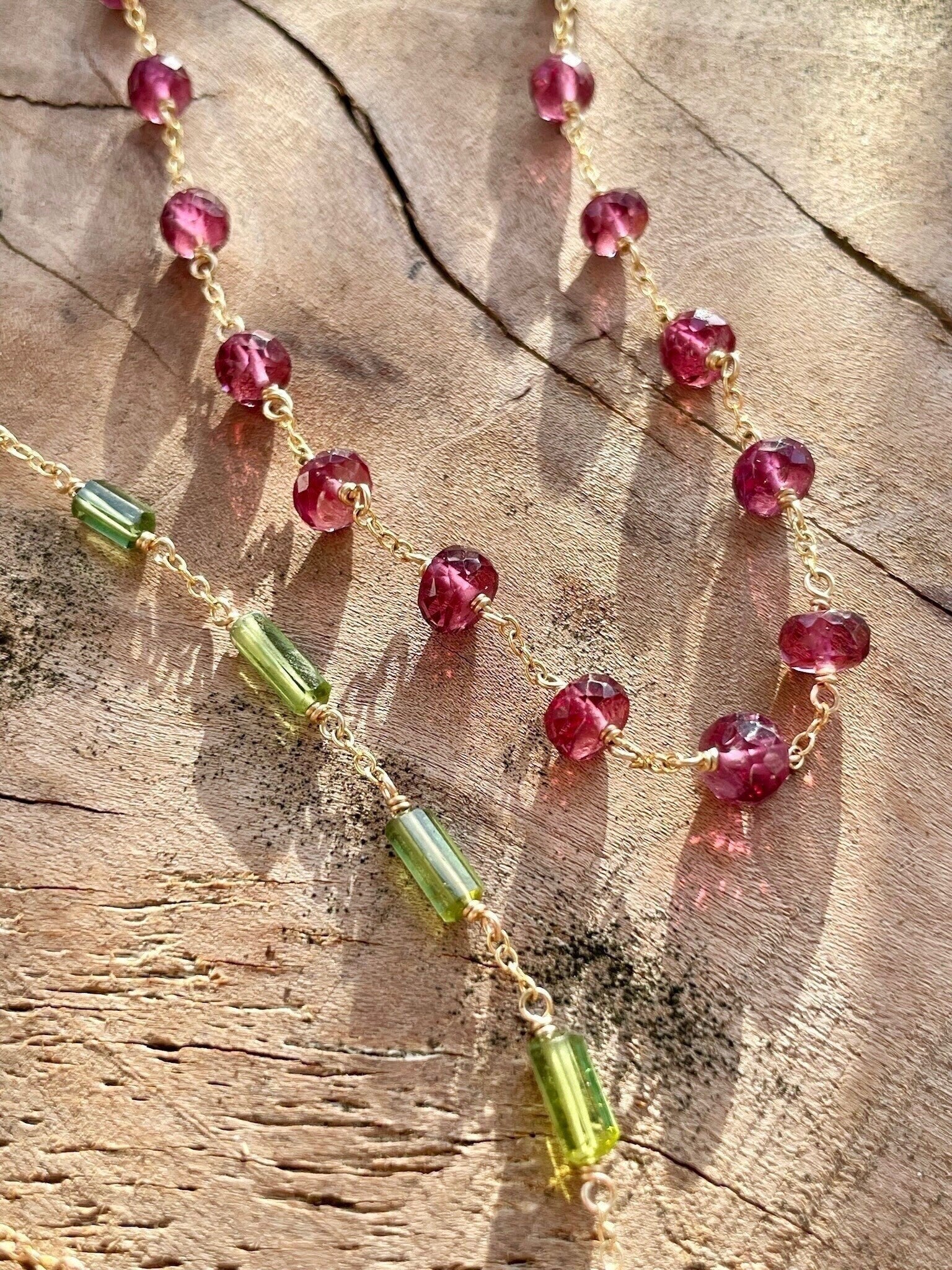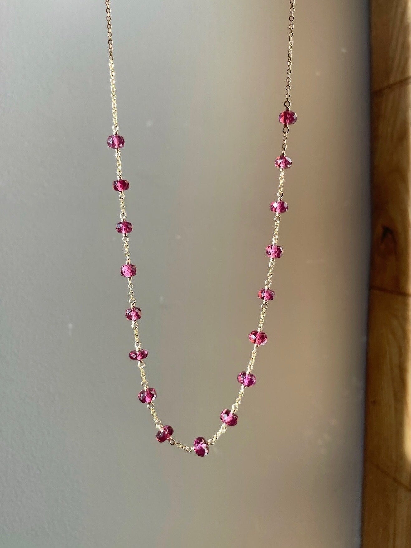 Malaya Garnet Chain Link Necklace, January Birthstone