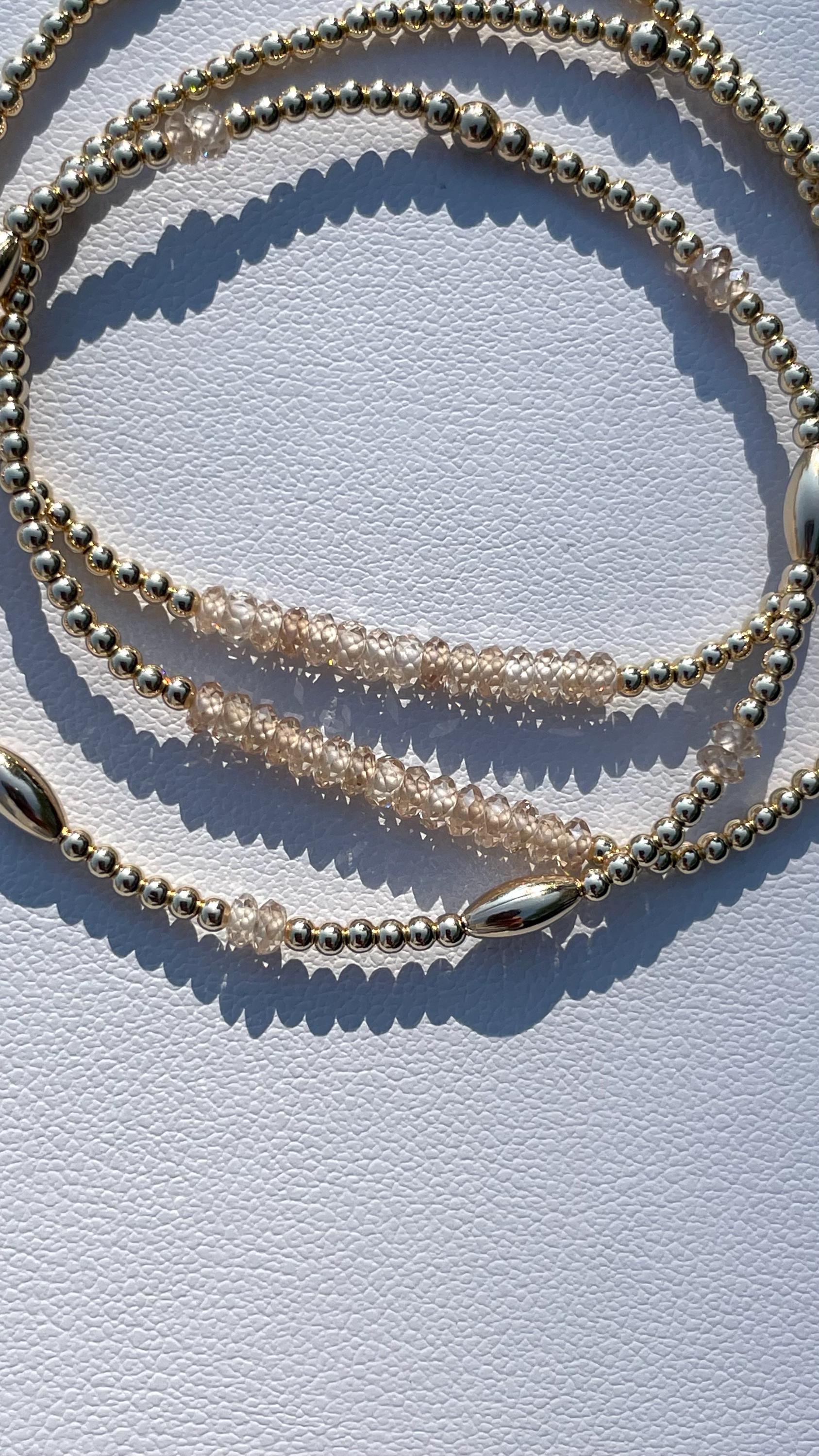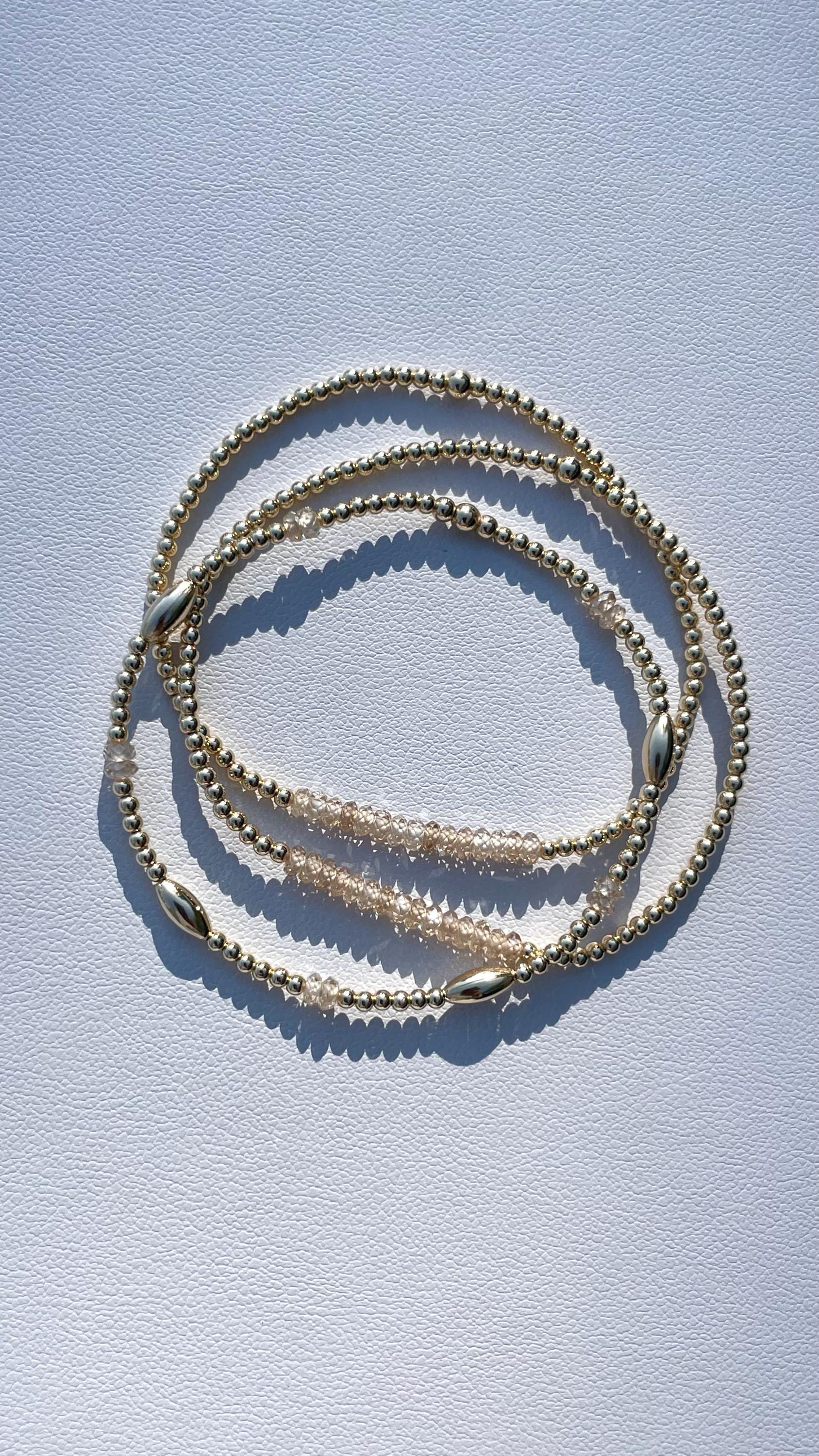 Gold Beaded Bar Bracelet Natural Zircon