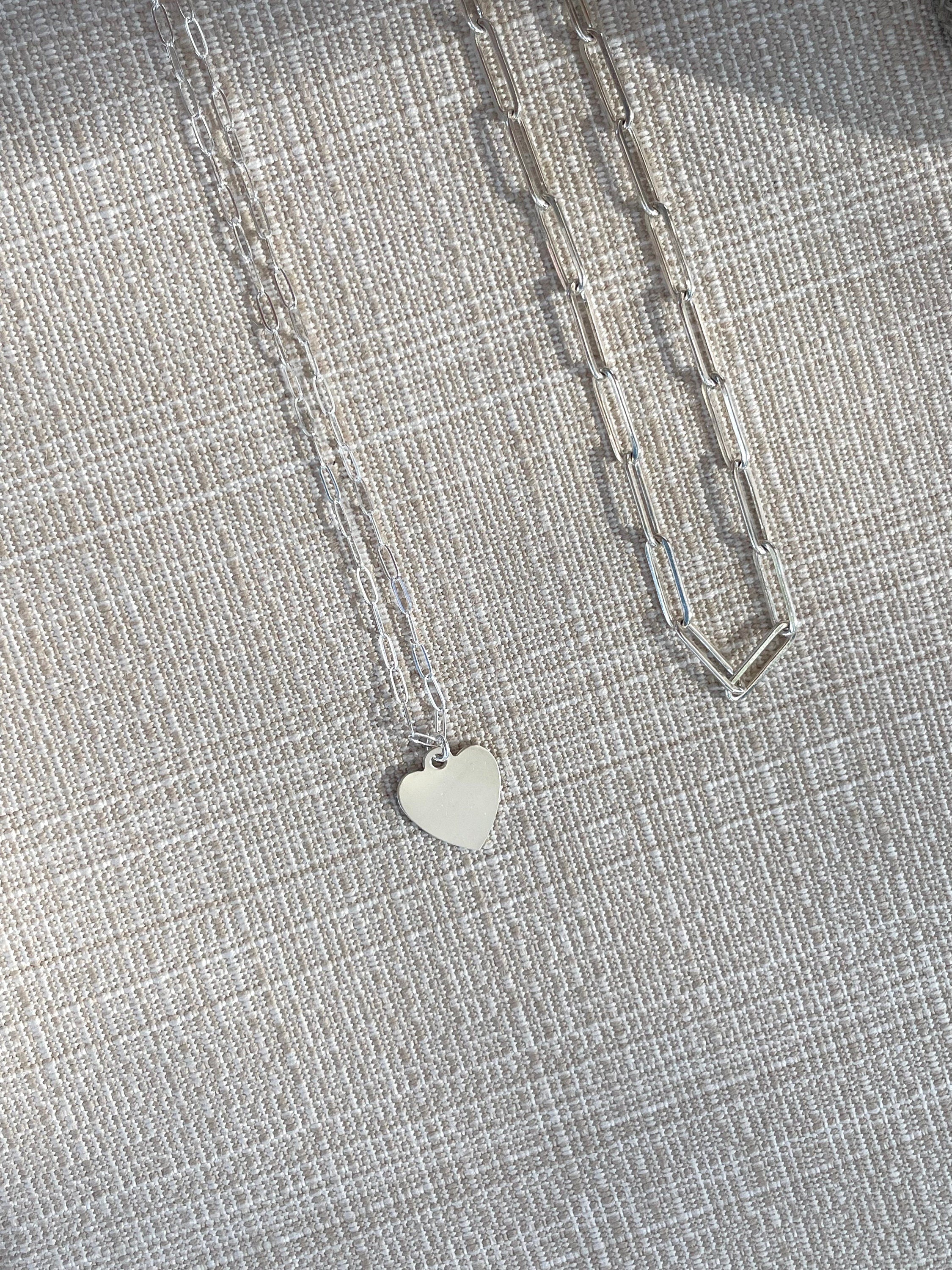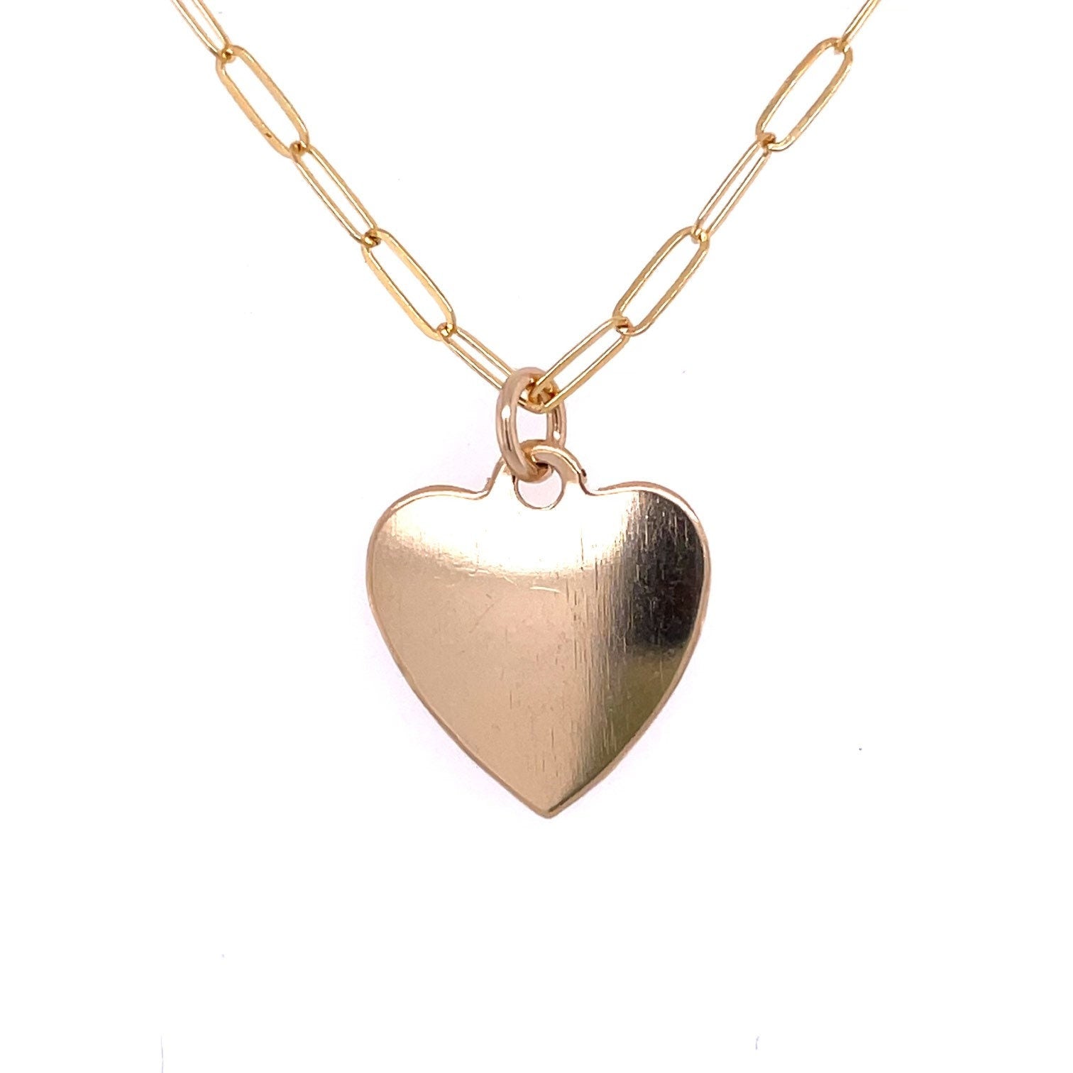 Beautiful heart necklace on a delicate paperclip chain in your choice of 14k gold filled or sterling silver. The delicate paperclip chain beautifully showcases a captivating heart pendant that not only reflects light but adds a bold splash of gold or silver to your ensemble. Whether worn alone for a subtle touch of elegance or layered for a bolder statement, this heart necklace on paperclip chain is a captivating addition to any jewelry enthusiast's wardrobe and makes a fabulous gift for a loved one.