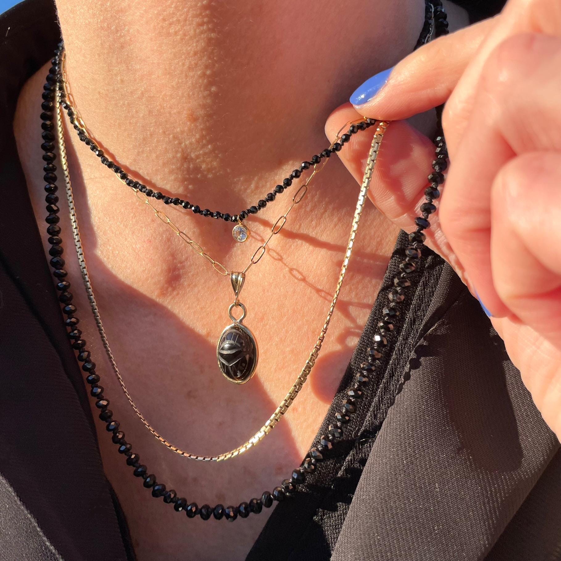 Silk-knotted gemstone necklaces are meticulously crafted with a high level of expertise and attention. Each gem is separated with an individual knot which protects the stones from rubbing against each other. This process takes a considerable amount of time and patience but provides for a flexible, kink-free drape on the body. Each stone sparkles on its own. A silk knotted necklace is truly something special to cherish!