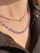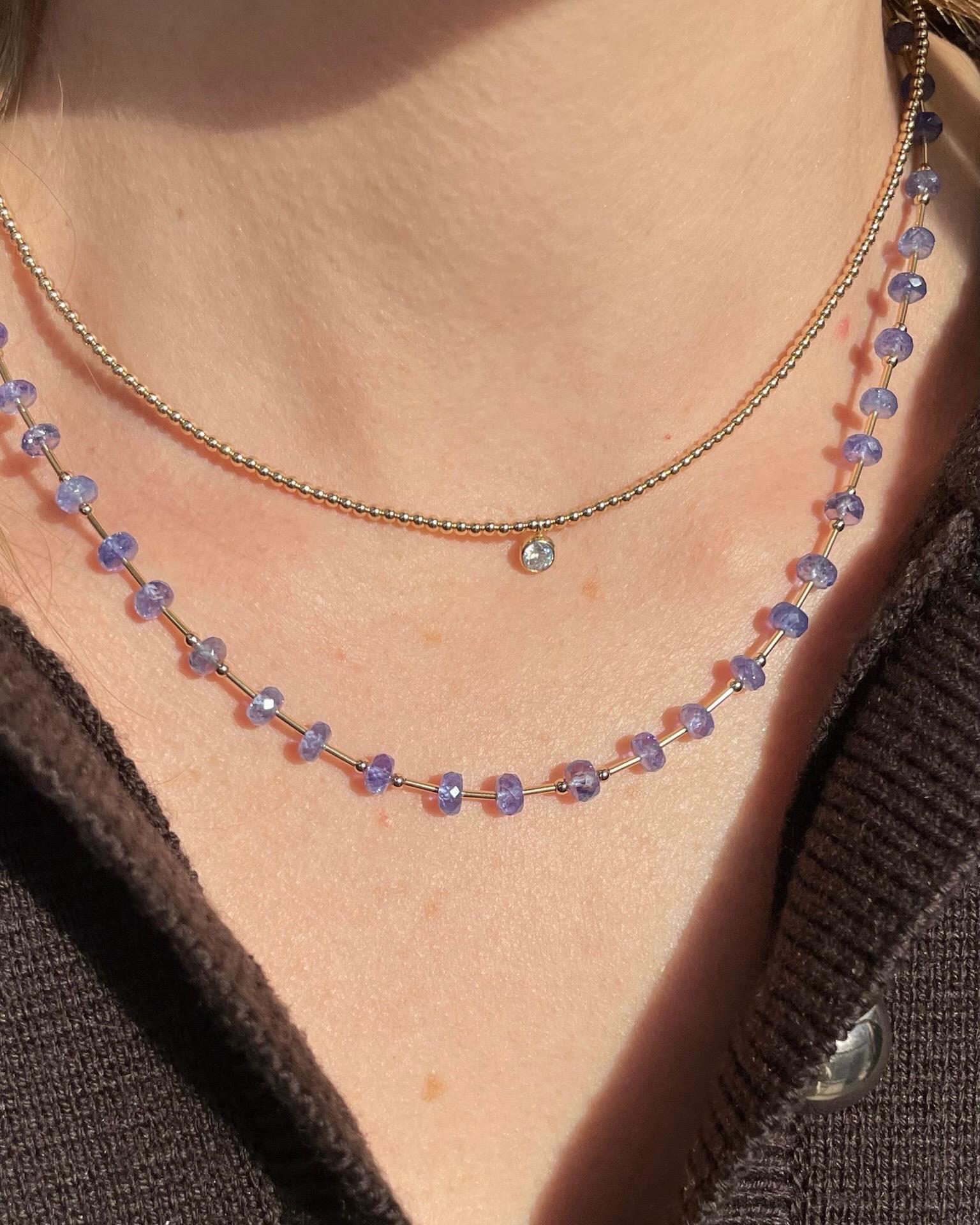 Tanzanite and Gold Bar Beaded Necklace