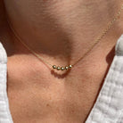 Super cute gold choker that is perfect for layering. A nice pop of gold to any look. Fidget with the 5 beads that move on the chain. If you would like to specify how many beads, please include a message telling us how many. We can do 3-7 beads. It's fun to use a bead to represent each child or grandchild. Plus, its waterproof design ensures you can wear this charming gold choker anywhere, anytime, making it both stylish and practical for your active lifestyle.