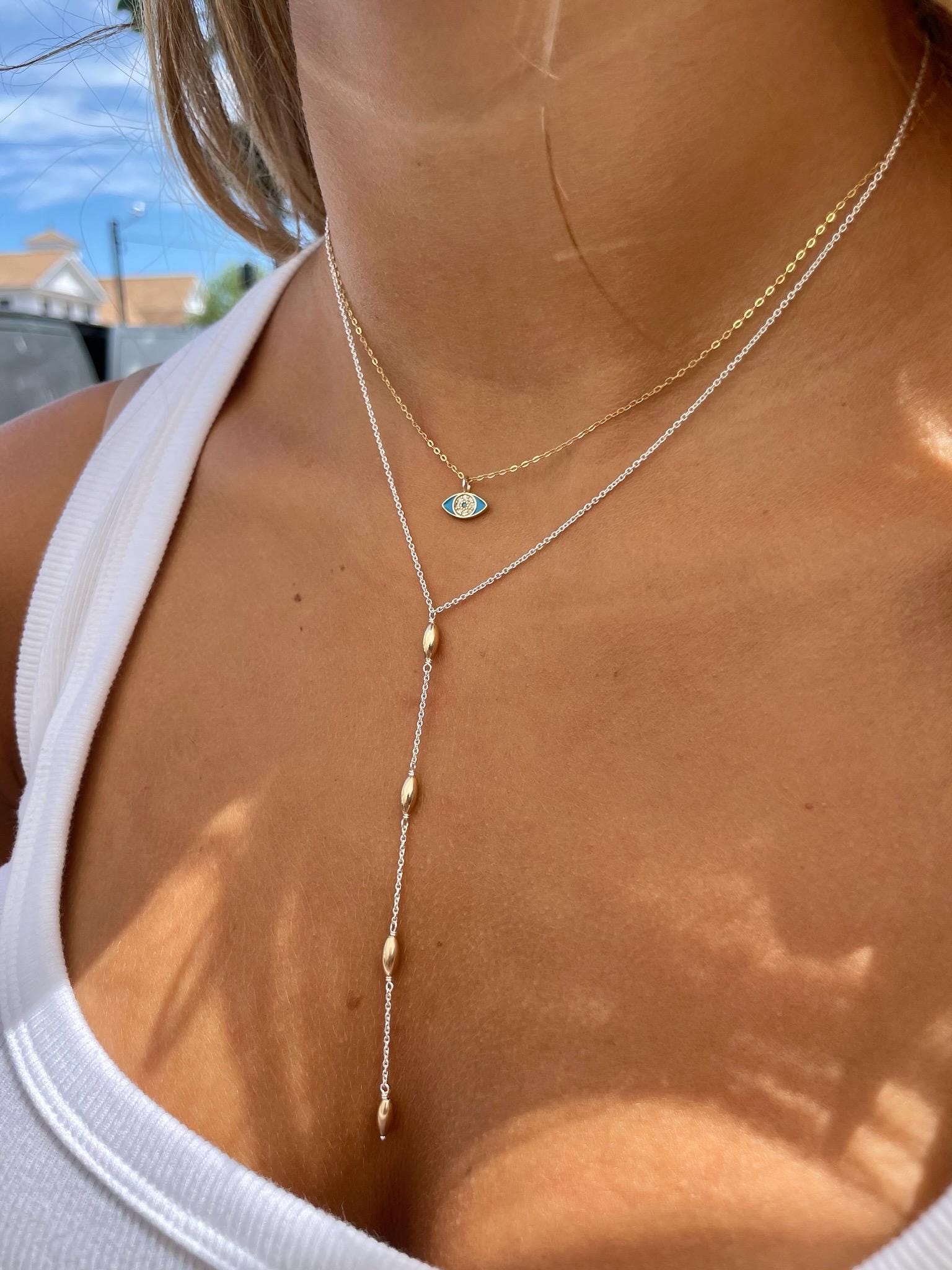Oval Y-Necklace, 14k Gold Filled and Sterling Silver