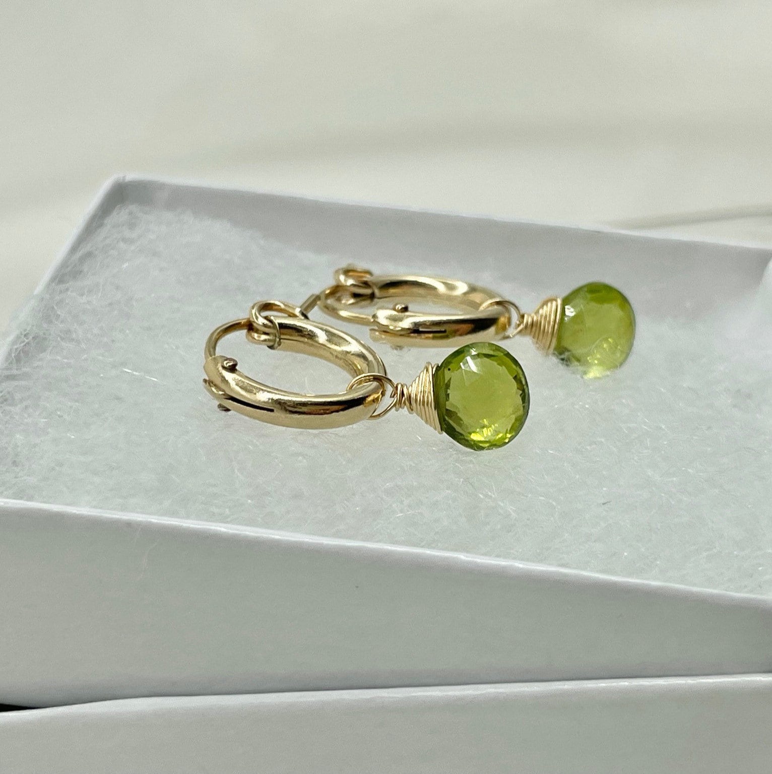 Peridot Huggie Hoop Earrings – August Birthstone, 14k Gold-Filled or Sterling Silver, 12mm