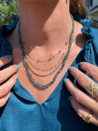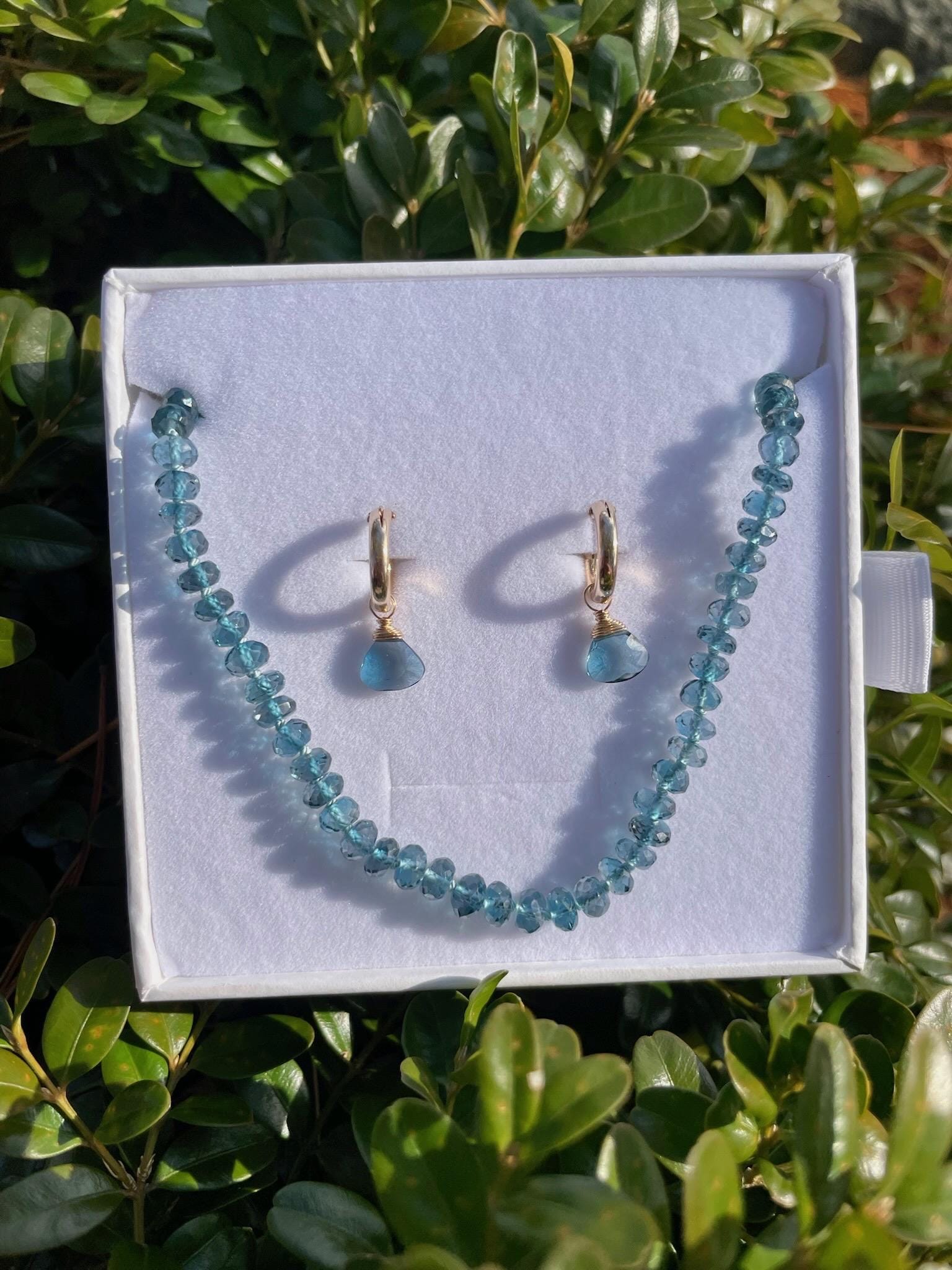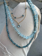 Indulge in timeless elegance with our London blue topaz necklace. Hand-knotted on a lustrous light blue silk cord, each genuine London blue topaz gemstone exudes a captivating deep blue hue reminiscent of the ocean. Secured with a 14k gold-filled lobster clasp. Versatile and chic, it's the perfect accessory to elevate any look, from casual to formal. Add a touch of luxury to your collection with this exquisite London blue topaz necklace.
