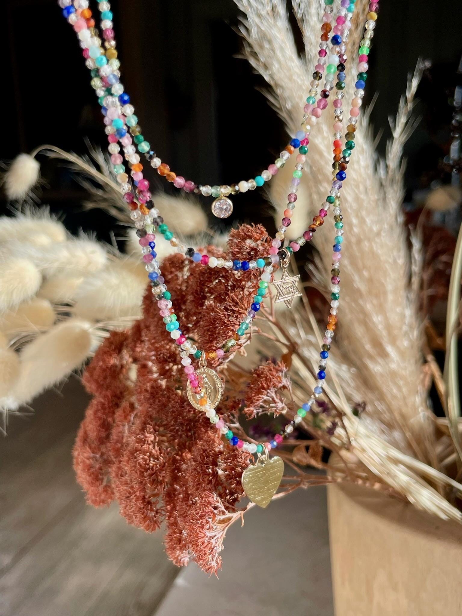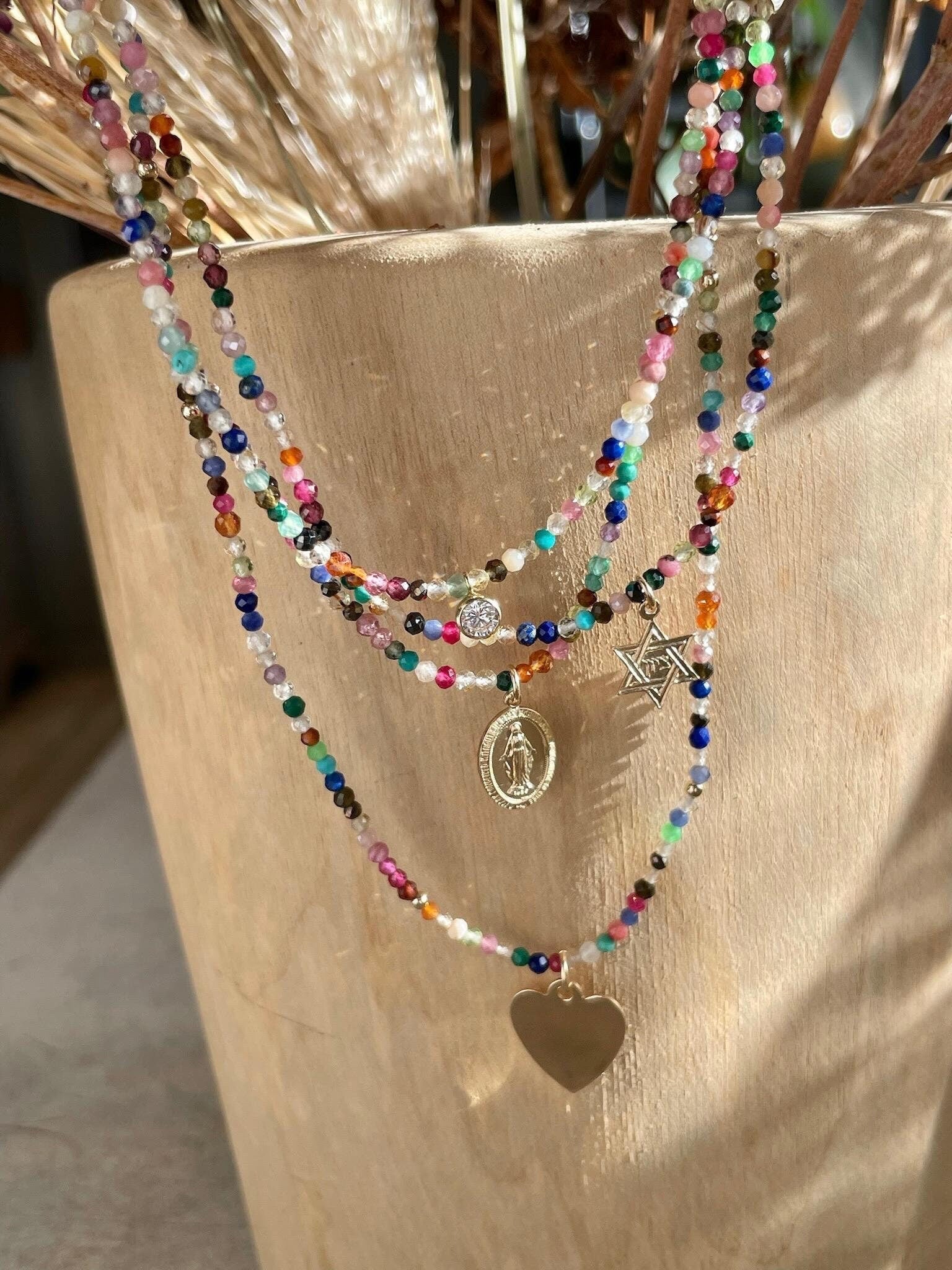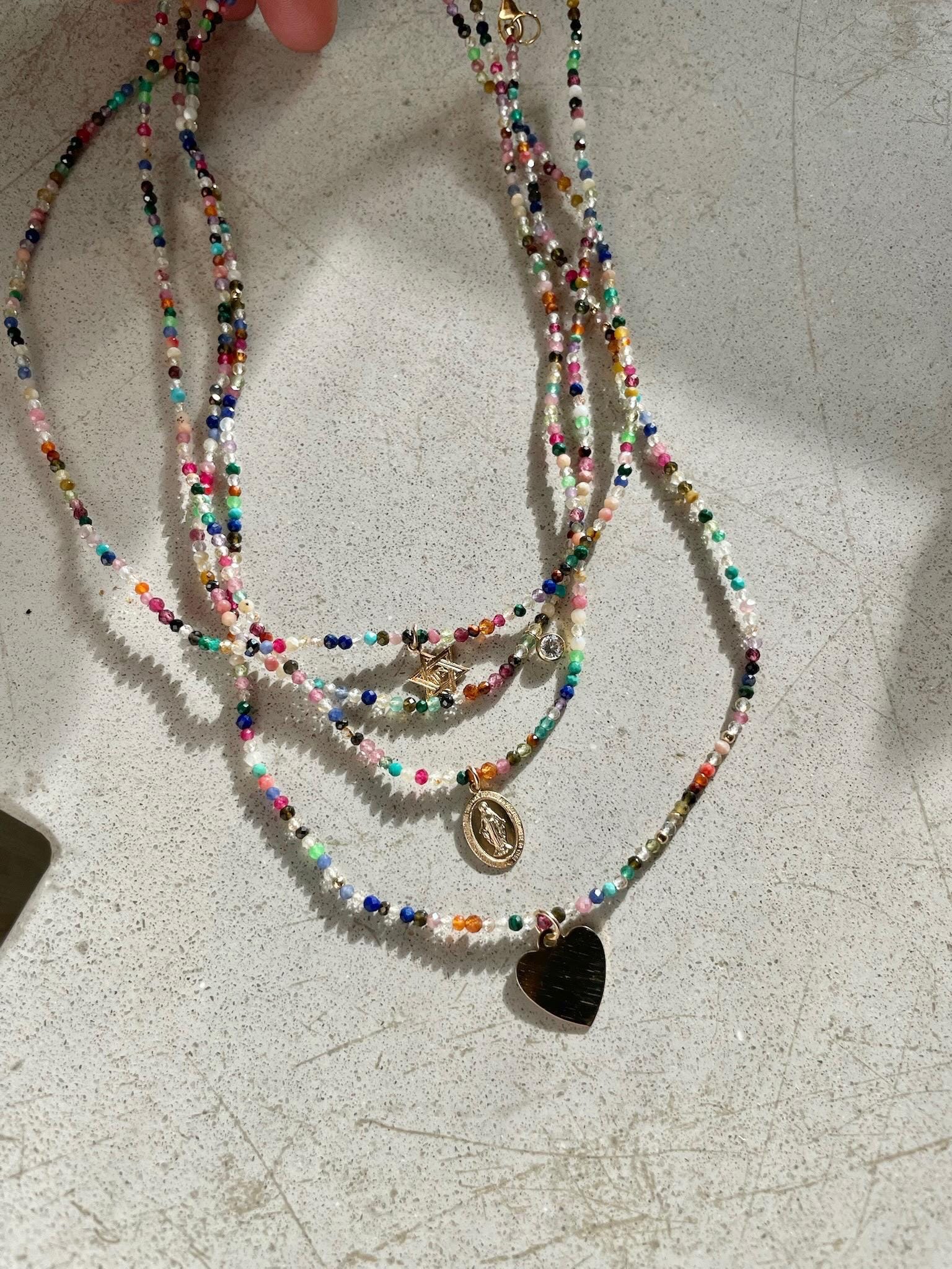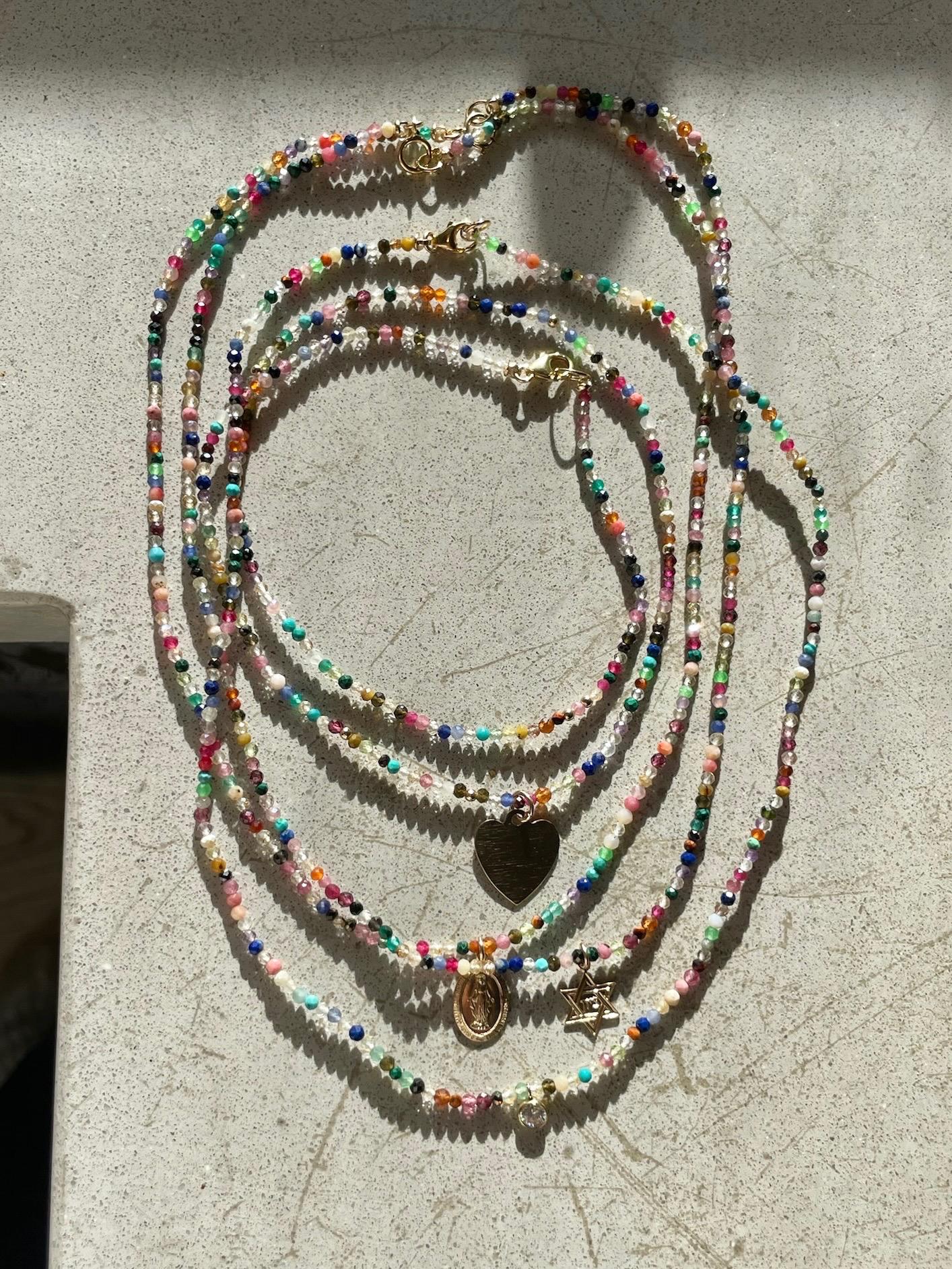 Multi Gemstone Charm Necklace, Rainbow Beaded Necklace