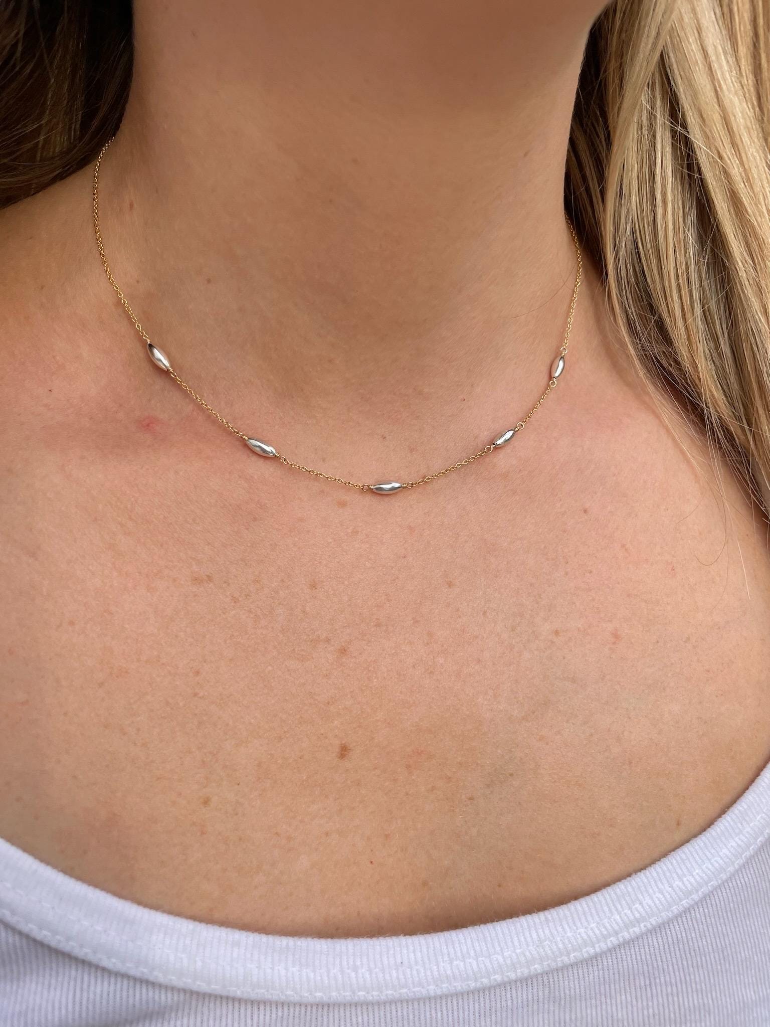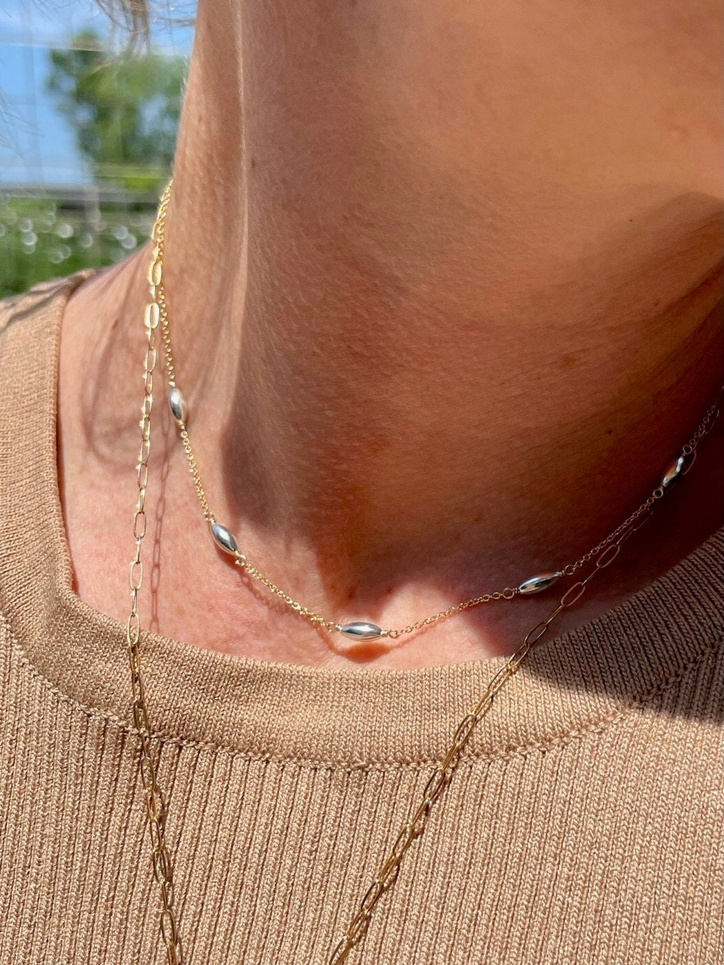 Oval Station Necklace, 14k Gold Filled and Sterling Silver
