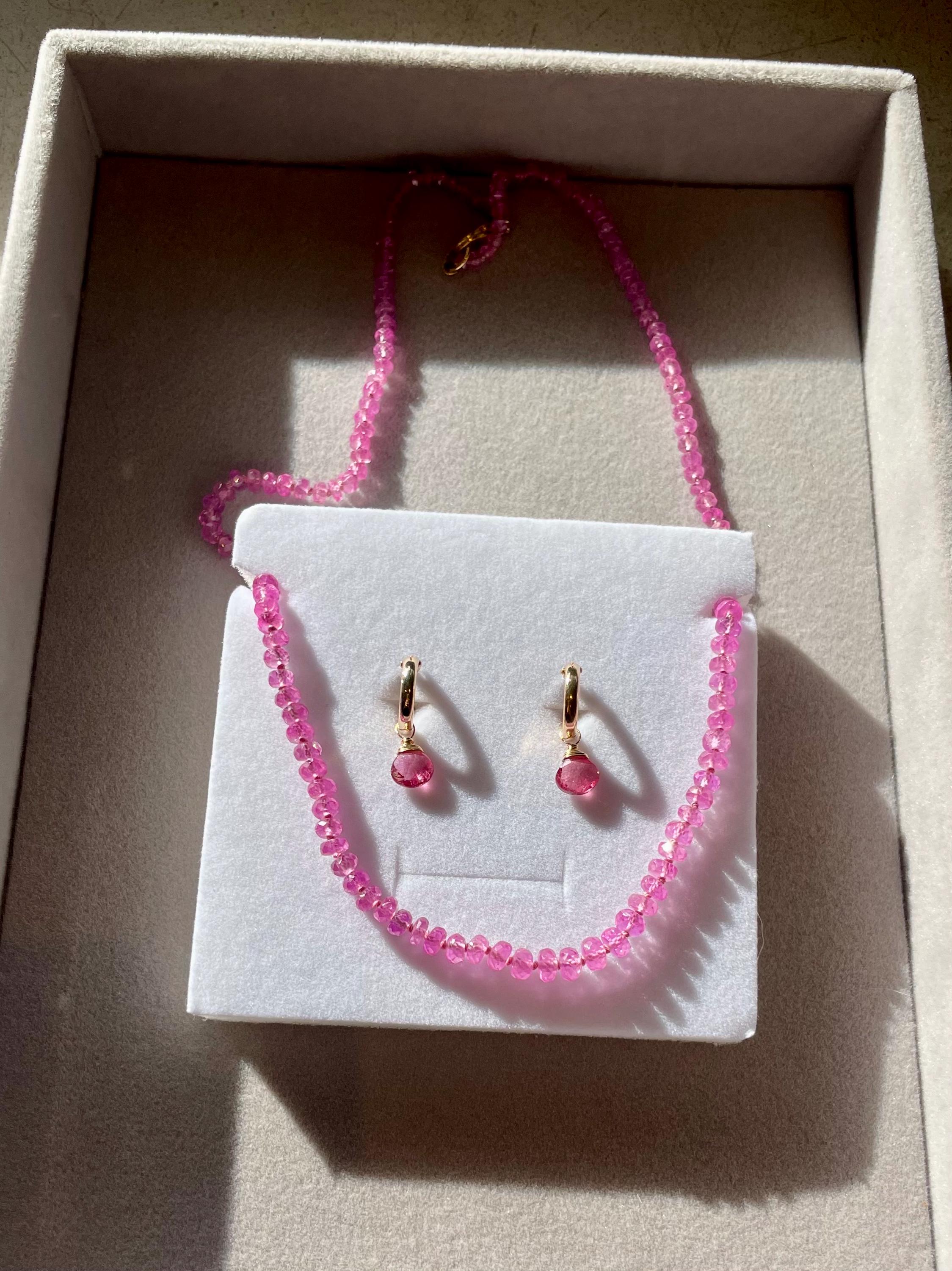 Pink Tourmaline Huggie Hoop Earrings – December Birthstone, 14k Gold-Filled or Sterling Silver, 12mm